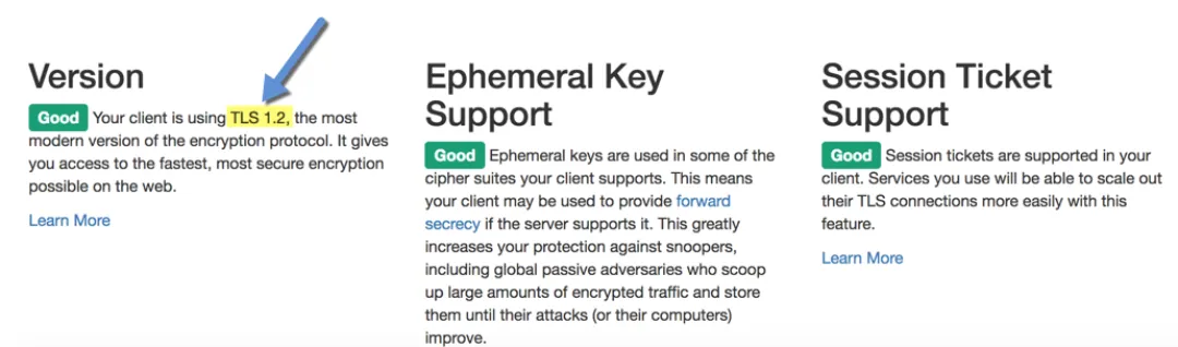 From each machine, launch Internet Explorer and go to http://howsmyssl.com. Look at the Version section to ensure TLS 1.2 is being used: