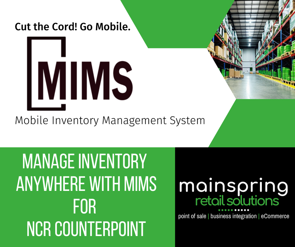 MIMS is a mobile inventory solution that extends the power of your Counterpoint system to handheld devices. Data is collected in real time (or offline when needed) and securely transferred back to Counterpoint via an API. This means your staff can work where the inventory lives, not where the workstation is.