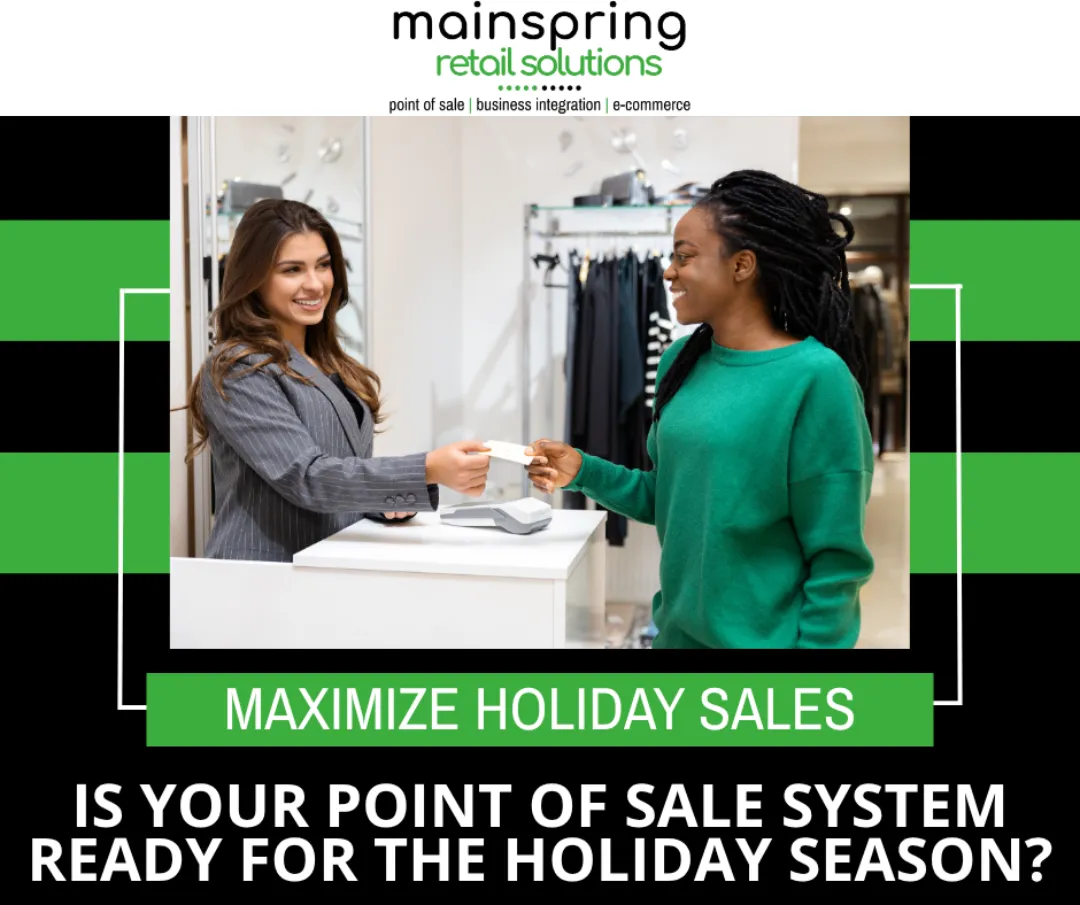 The most successful holiday seasons are the ones planned in advance. Mainspring is here to make sure your technology is an asset, not a hurdle, as you serve your customers. Contact us today to schedule a system checkup and ensure your Counterpoint, hardware, and supporting solutions are holiday-ready.